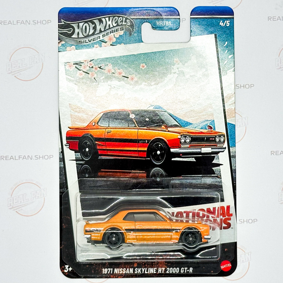 Hot Wheels 1971 Nissan Skyline HT 2000 GT-R zo série National Icons z roku 2025 ; číslo zo série: 4/5 ; čislo z kolekcie: 0 ; kód: JBY89 ; farba: Oranžová