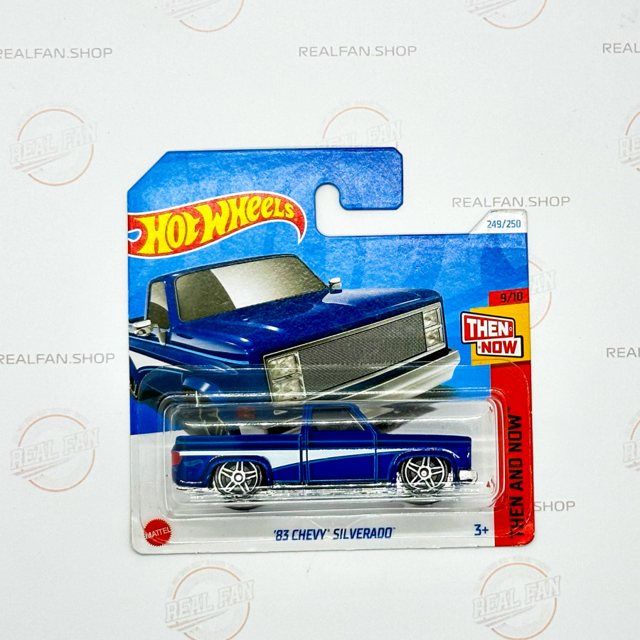 Hot Wheels '83 Chevy Silverado zo série Then and Now z roku 2024 ; číslo zo série: 9/10 ; číslo z kolekcie: 249/250 ; kód: HTC73 ; farba: Modrá
