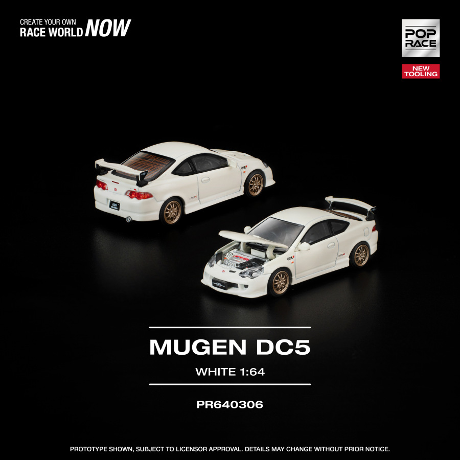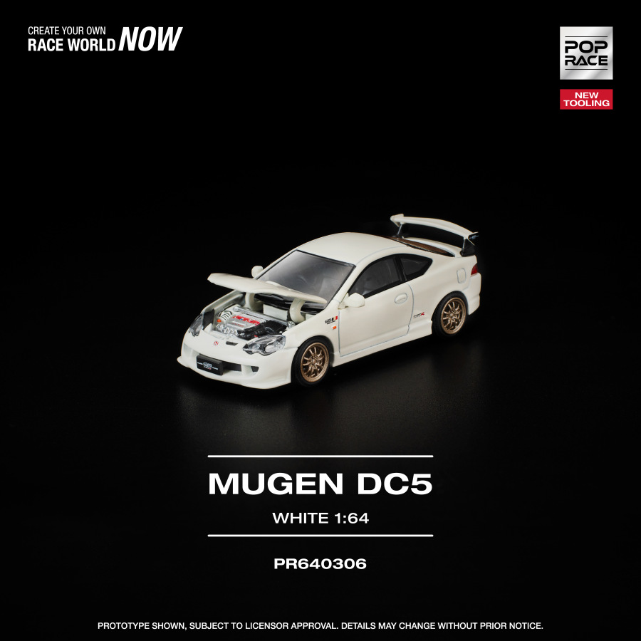 Trackovo orientované majstrovské dielo s atmosférickým motorom – Honda Integra Type R (DC5) v úprave od Mugen Motorsports spája precízne inžinierstvo s mimoriadne zábavným jazdným prejavom. Pop Race prináša tento ikonický model v bielej farbe s otvárateľnou prednou kapotou, pod ktorou sa nachádza detailne spracovaný motor.