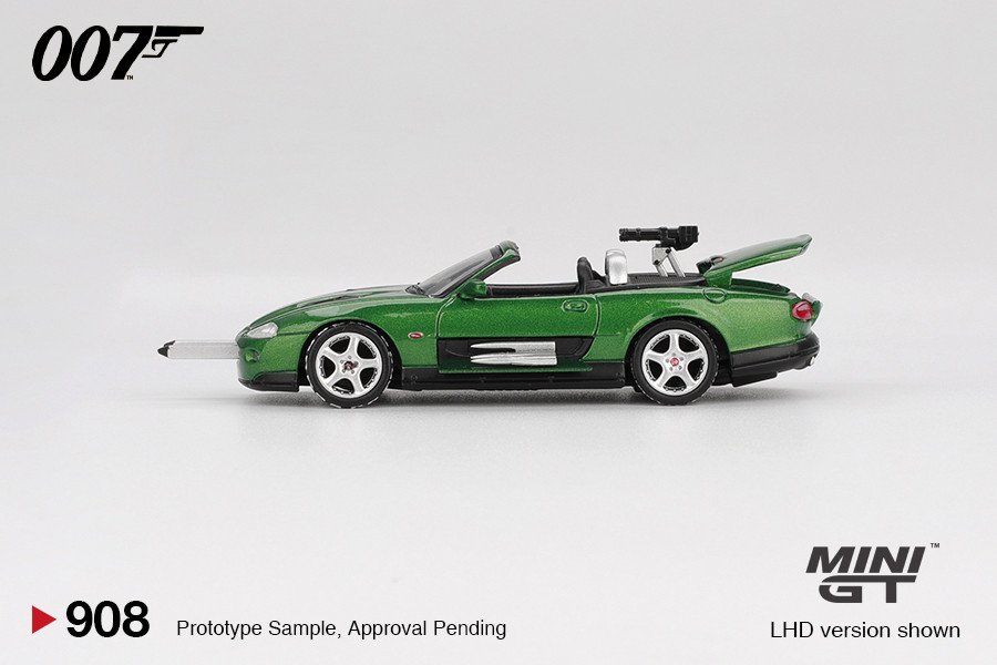 Model v mierke 1:64 zachytáva ikonický Jaguar XKR z filmu Die Another Day (2002), v ktorom ho šoféruje Zao – jeden z najnebezpečnejších protivníkov Jamesa Bonda. MINI GT spracoval túto filmovú konfiguráciu ako detailný zberateľský model s dôrazom na proporcie, výzbroj a charakteristické prvky vozidla – vrátane zadného krídla, výfukového systému a kompletného arzenálu z filmovej scény. Model obsahuje realisticky spracované svetlá, disky, výzbroj, interiér a detaily karosérie.