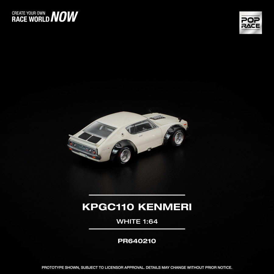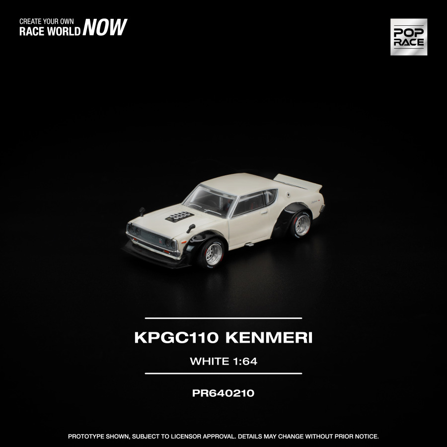 Vlastný projekt od Pop Race predstavuje unikátnu interpretáciu legendárneho Nissan Skyline GT-R (KPGC110), známeho ako Kenmeri. Wide-body dizajn dopĺňa brutálny NASCAR-style V8, čím vzniká jedinečné spojenie japonského dizajnu a amerického muscle charakteru. Najnovšia verzia prichádza v bielej farbe s otvárateľným predným aj zadným kufrom a detailne spracovaným motorom.