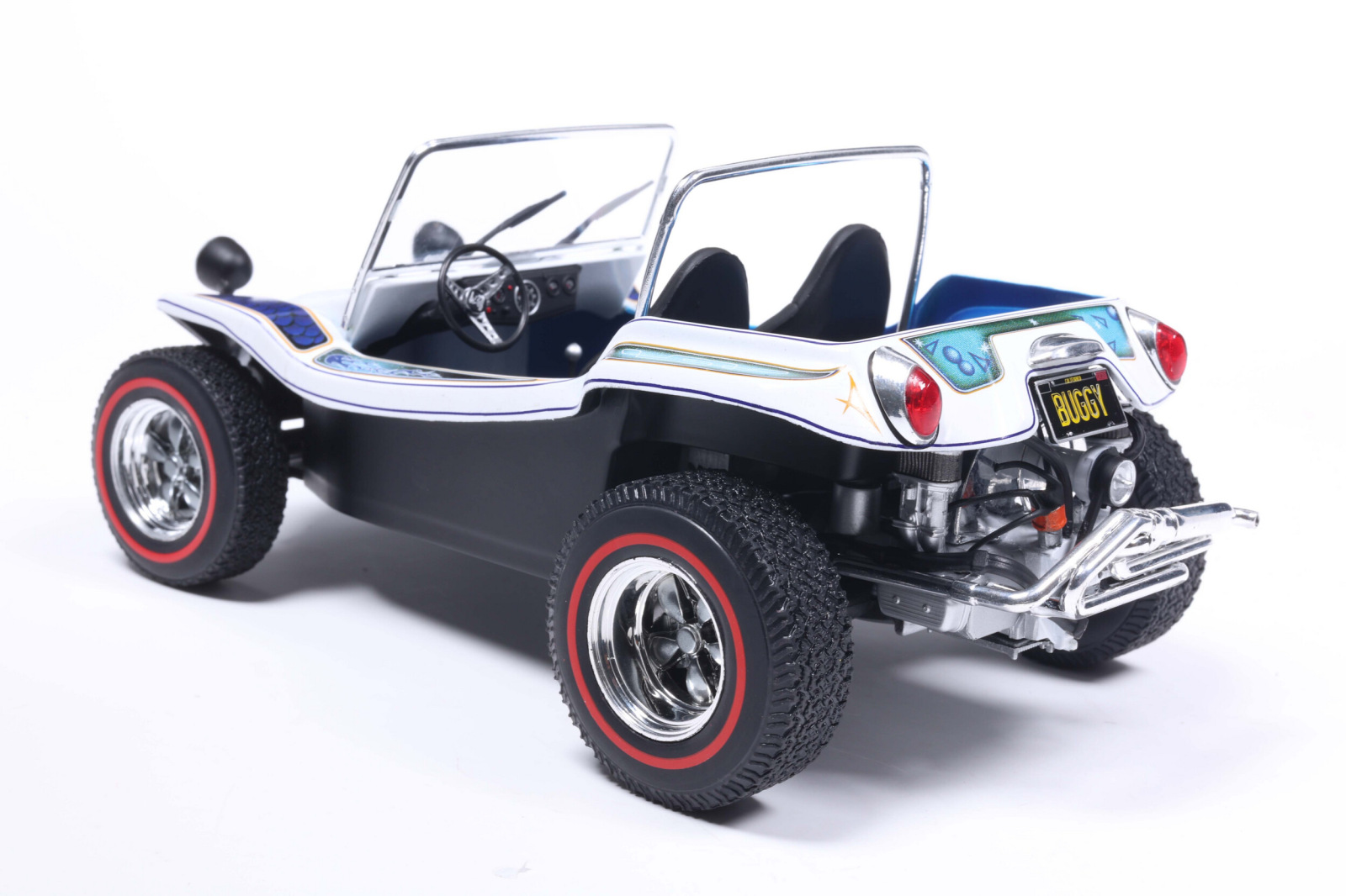 O predlohe modelu: Meyers Manx Buggy je ikonou americkej beach a off-road kultúry 60. rokov. Postavený na základoch VW Beetle, vďaka ľahkej laminátovej karosérii a jednoduchému dizajnu sa stal symbolom voľnosti a zábavy mimo spevnených ciest. Dodnes patrí medzi najznámejšie bugginy všetkých čias a inšpiruje custom aj off-road scénu po celom svete.