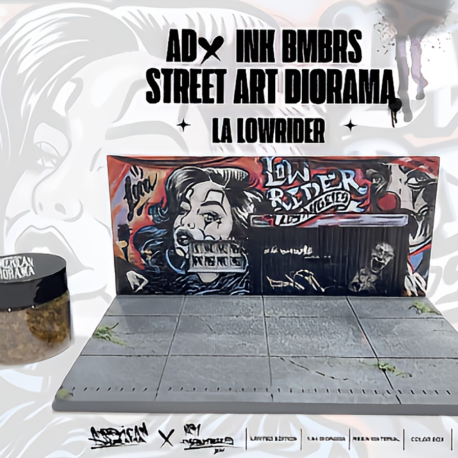 Atmosféru slnečného Los Angeles a autentickú kultúru pouličného umenia prináša táto detailná dioráma, ktorá vznikla v rámci exkluzívnej kolaborácie s tetovacím umelcom Danielom z INK BMBRS. Pozadie scény tvorí masívna stena s precízne vykresleným graffiti motívom „Lowrider Los Angeles“, ktorý dominuje celému vizuálu. Umelecký dizajn s portrétom a mestskými prvkami dodáva vystaveným modelom v mierke 1:64 potrebný kontext a drsný, mestský charakter.