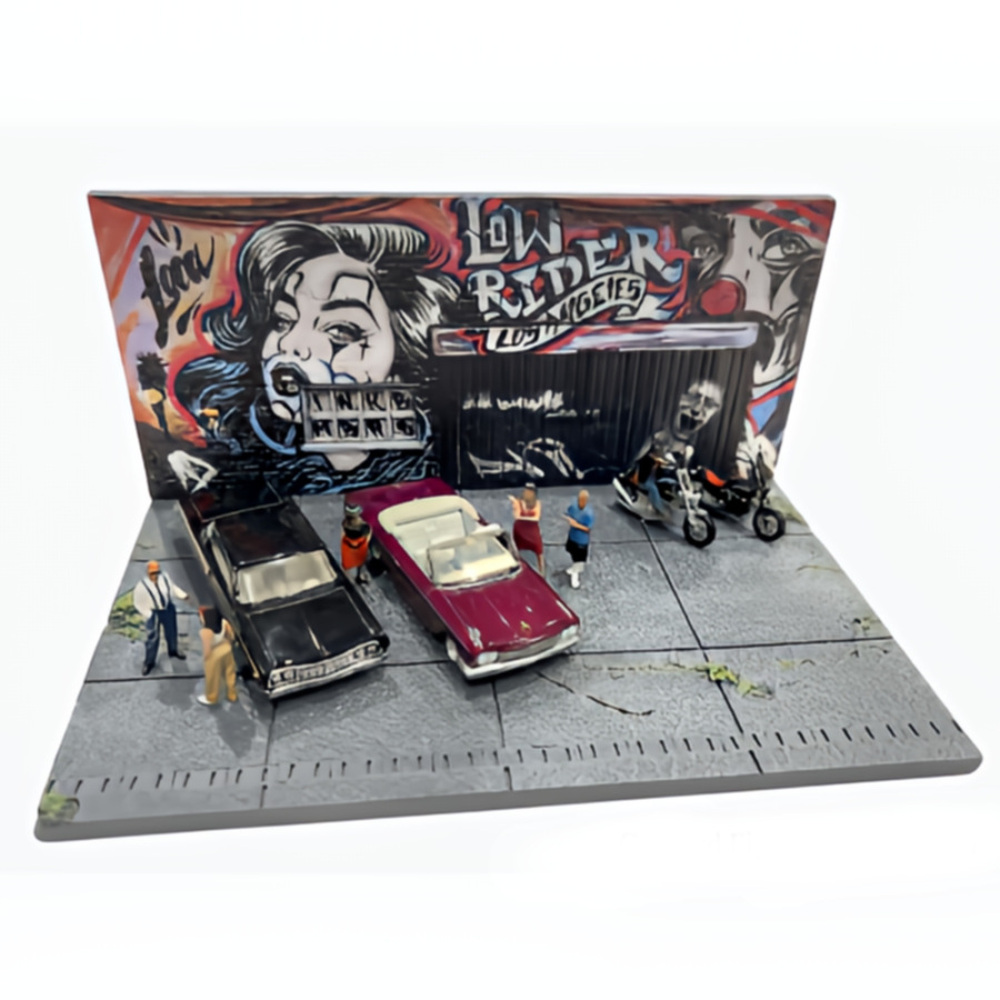 Pouličná kultúra Lowriderov v Los Angeles je neodmysliteľne spätá s umeleckým vyjadrením vo forme graffiti a tetovaní, ktoré sa prenášajú priamo na kapoty vozidiel alebo steny štvrtí ako East LA. Táto dioráma vzdáva hold spojeniu motorizmu a mestského umenia, pričom využíva reálne dizajny tetovacieho štúdia INK BMBRS. Lowrider nie je len o nízkom podvozku a hydraulike, ale o životnom štýle, hrdosti na komunitu a vizuálnom príbehu, ktorý každé auto rozpráva. Vďaka takýmto doplnkom môžu zberatelia preniesť kus tejto špecifickej subkultúry priamo do svojho domova a vytvoriť tak autentické prostredie pre svoje modely japonských, amerických či európskych vozidiel.