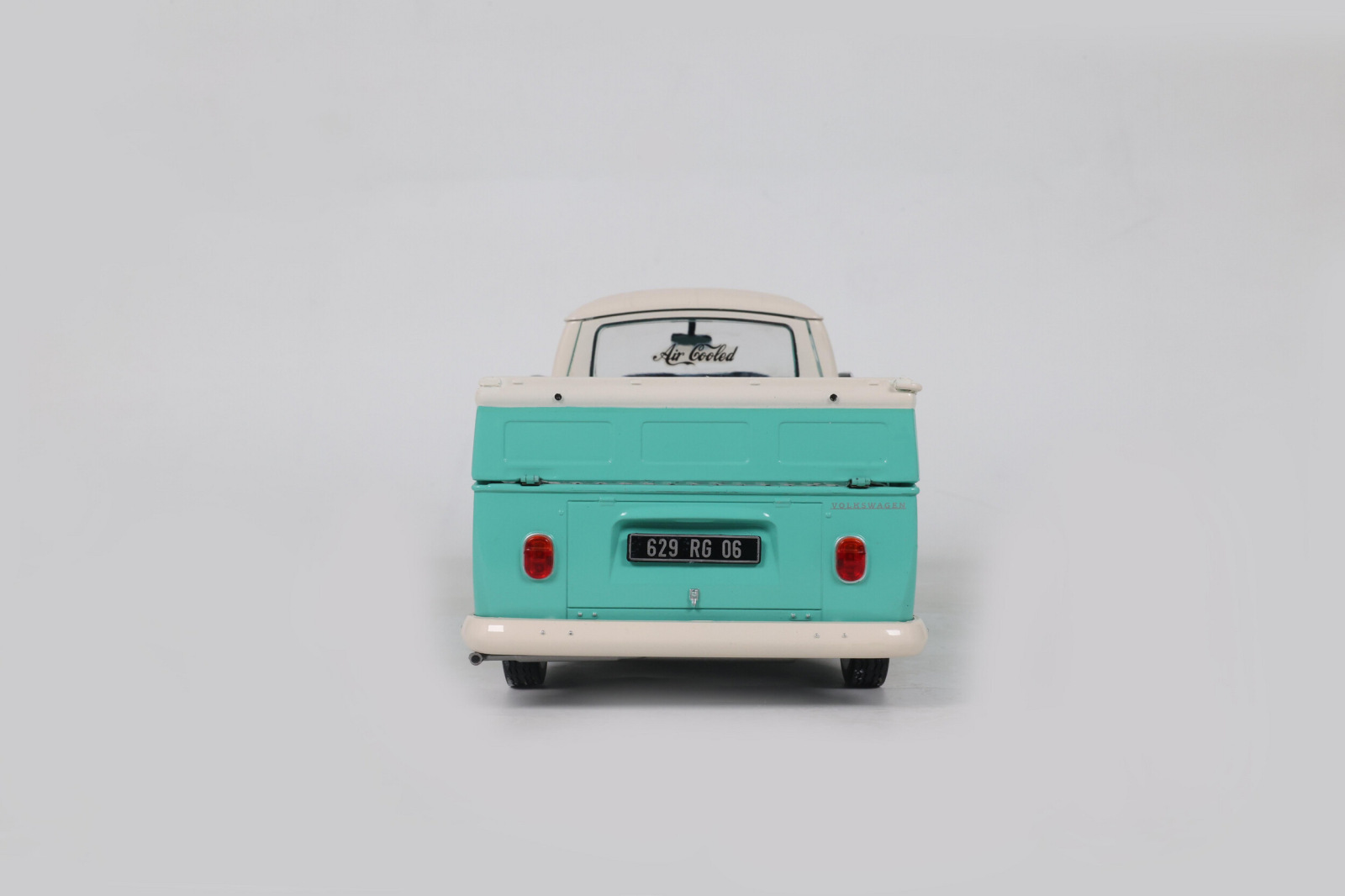 Kovové spracovanie ikonického úžitkového vozidla od spoločnosti Solido v mierke 1:18 prináša legendárny Volkswagen T2 Pick Up v kombinácii tyrkysovej a bielej farby. Tento model verne zachytáva atmosféru konca 60. rokov, kedy sa T2 stal symbolom praktickosti, slobody a všestranného využitia.